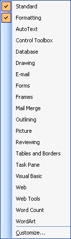 the right). This menu allows me to choose which toolbars I have