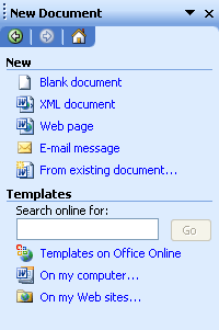 Click the New button ( - Click the File menu, click New, and click the Blank Document link in the task pane (normally on the right hand side of the screen), like the picture on the right.