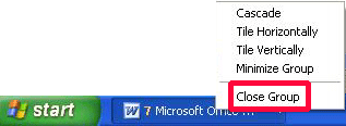 You can close all grouped documented by right-clicking on the grouped item in the taskbar too. No matter where you close a document from, if you have not saved the document you will be prompted to do so.