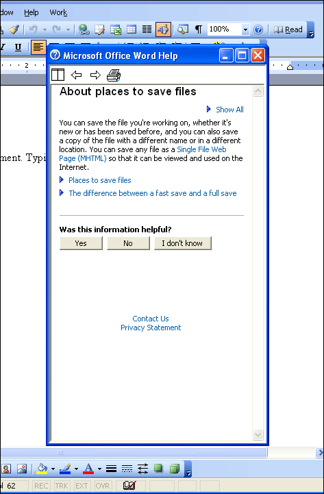 Help menu and click Microsoft Office Word Help, you’ll see a task pane