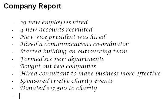 Let’s look at our Company Report document for an example. Let’s say our last action was typing the last line in this sample: