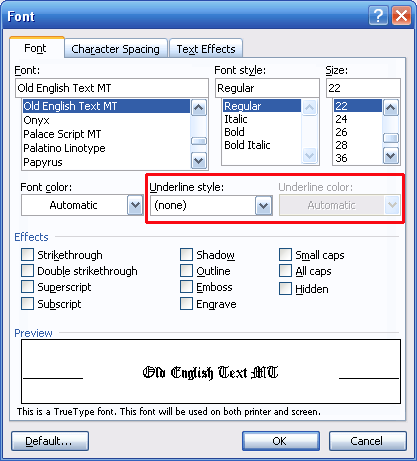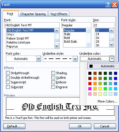 You can customize underlining even further by clicking the Format menu and clicking Fonts. Let’s look at those options.