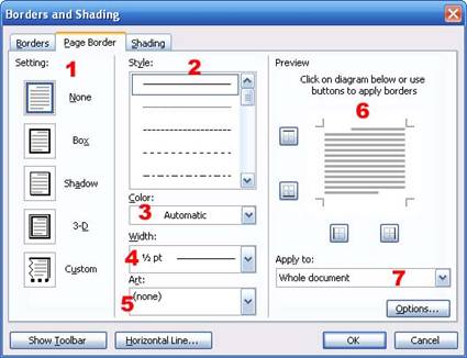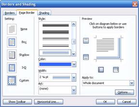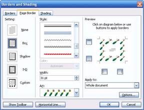 border you want: None, Box, Shadow, 3-D, or Custom. Each setting