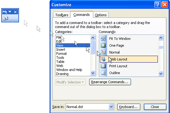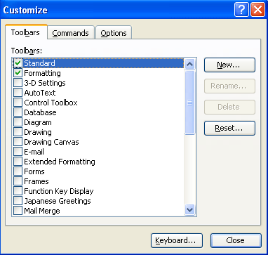 Remember that if you want to delete your toolbar or change its name at any time, just go back to the Customize screen and click the Toolbars tab. If you want to change its buttons, however, you must go back to Tools, click Customize, and click the Commands tab. You cannot right-click on it to change the buttons. |