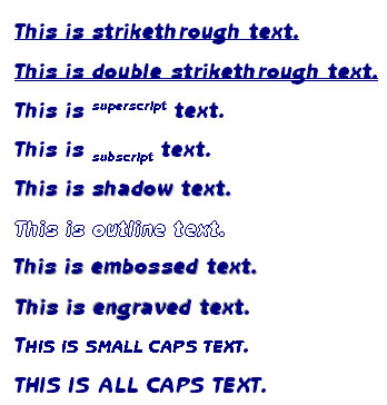 Font tab of the Fonts dialog box is Effects. This allows you to apply
